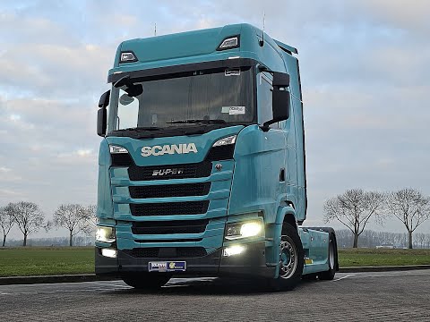 Number of axles: 2, Configuration: 4x2, Total fuel capacity: 1400 litre, 2nd fueltank, Fifth wheel height: 115 cm, fifth-wheel: Fixed, Diff. locks: 1, Suspension type: air suspension, Cabin type: Highline, Cruise control, Tacho, Digital tachograph, Airconditioning, Parking Airco, Parking heater, Electric windows, Electric mirrors, Radio/cassette, Carplay, GPS navigation, Color: Turquoise, Heated mirrors, Lighting type: Led lamps, Laneassist, Climatecontrol, Seat heating, Bluetooth, Engine capacity: 368 Kw (493 Hp), Fuel type: diesel, Euro: 6, Gearbox kind: Opti-cruise, Gearbox make: Scania, Number of Gears: 12, Add. break system, Retarder make: Scania, Power steering, ABS, ASR, Starter battery, Central locking, Seats configuration: 1+1, Seat cover: cloth, Chair adjustment: Manually